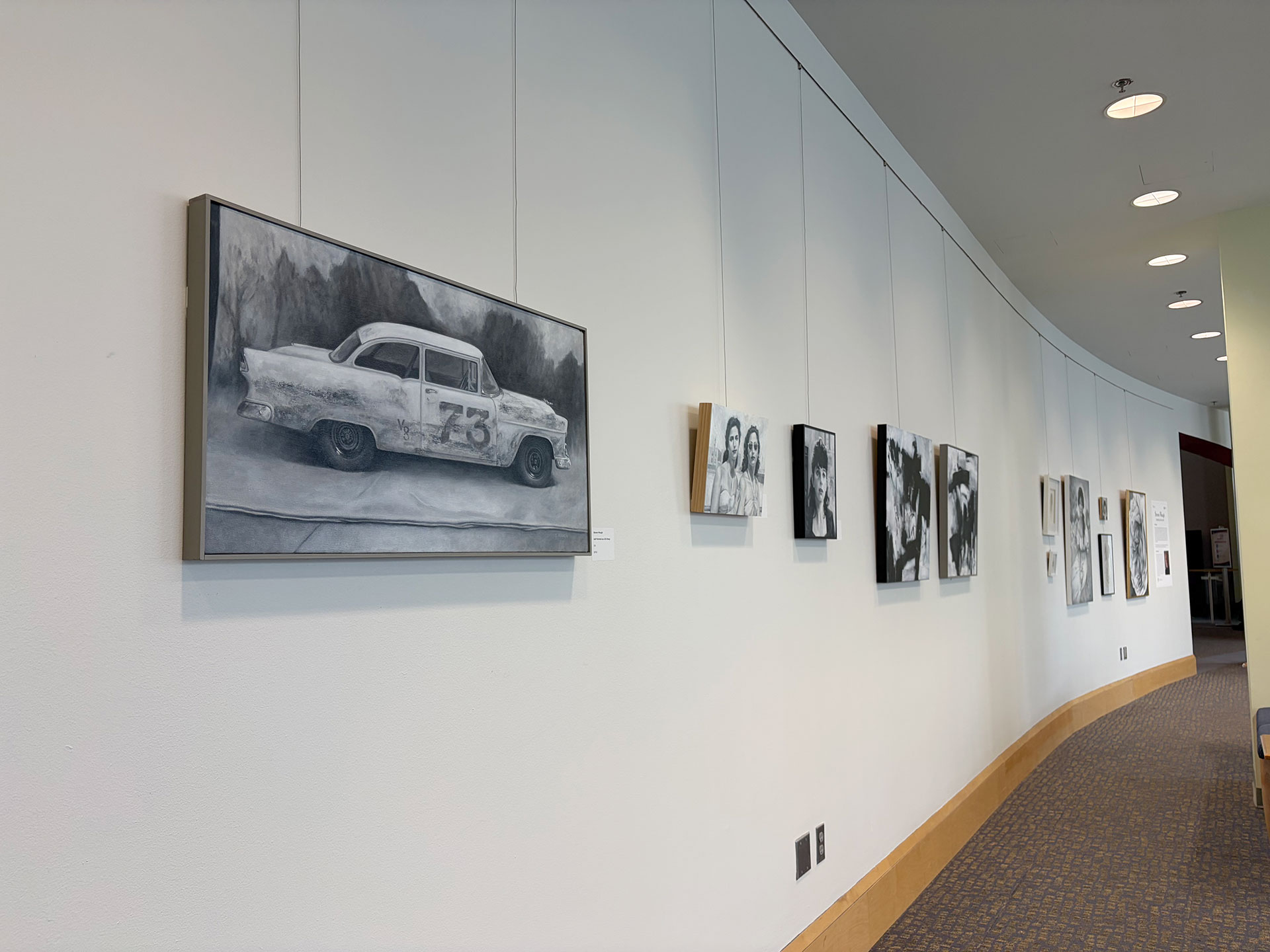 Steven Waugh is a self-taught painter from Baltimore whose work has been exhibited at the Corcoran Gallery of Art and the Baltimore Museum of Art. After a successful career as an I.T. Software Engineer and the raising of four talented children, Waugh returned to a life of full time painting. The black and white oil paintings that Waugh creates feature classic cars, objects from nature, and portraits of movie stars from the 1920s. Waugh states, “At times, it feels like color detracts from the reality of the subject, in a drawing, painting or photo. There is a depth of richness in the contrast.” Through his attention to contrast and detail, Waugh hopes to capture “a defined moment in time and place.”